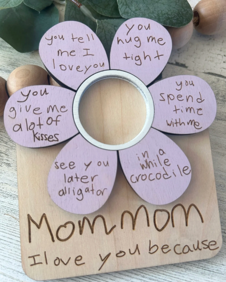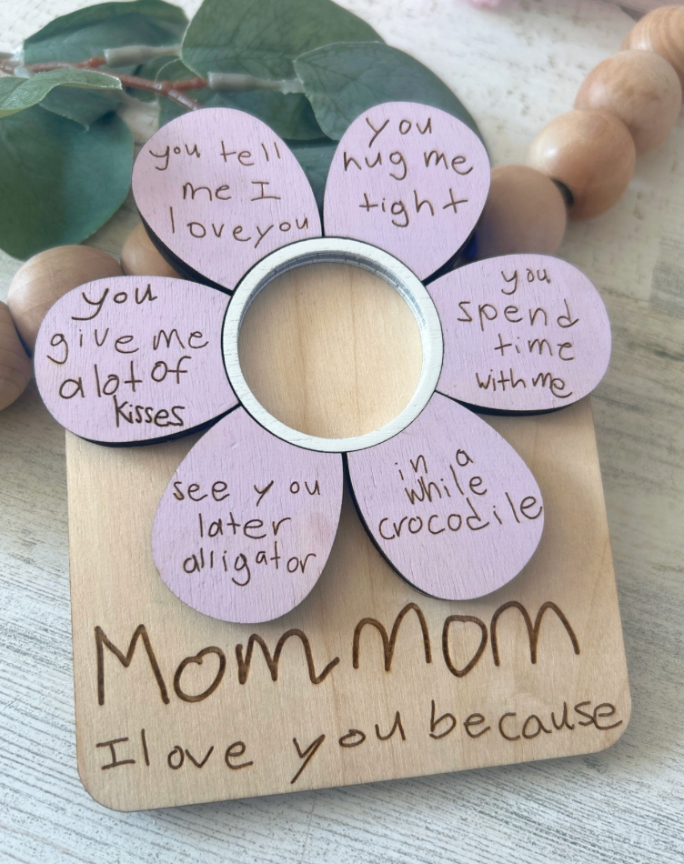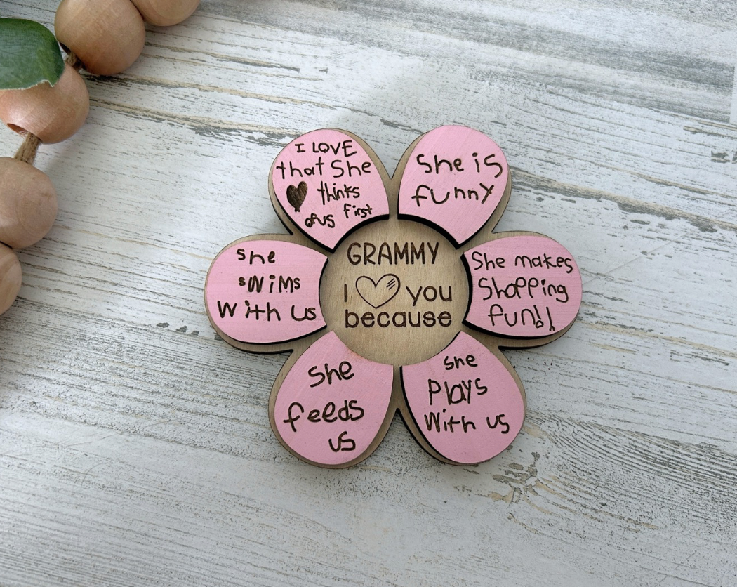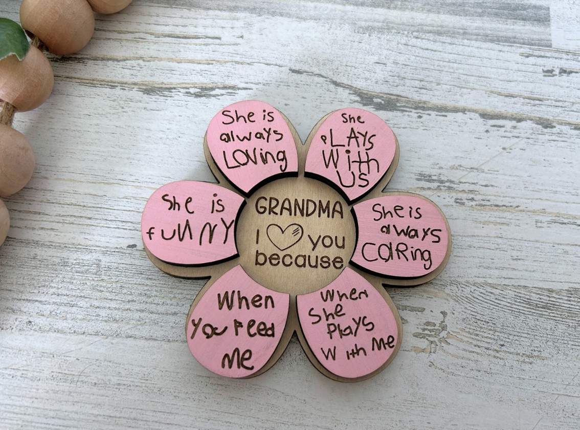 Celebrate the special people in your life with a heartfelt, handwritten keepsake they'll treasure forever! This Personalized “I Love You Because” Flower Magnet is a sweet and sentimental way for kids to express their love through thoughtful notes written on each petal. Perfect for Mother's Day, Grandparent's Day, Father's Day and more