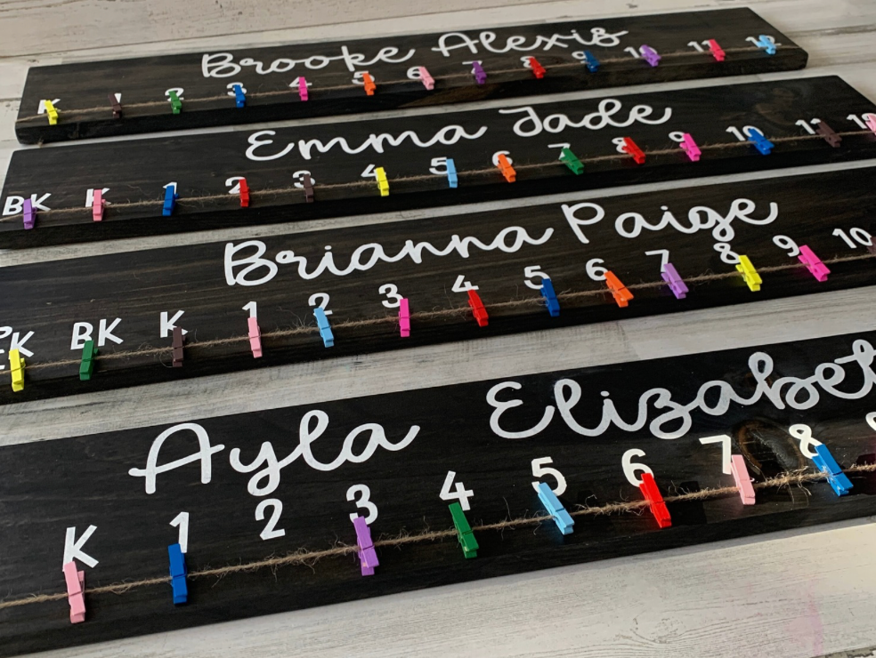 Capture every milestone from the first day of Kindergarten to senior year with this custom wooden school photo display board. Designed to hold wallet-sized pictures for each grade level, it’s the perfect way to watch your child grow through the years. Perfect gift for parents, grandparents, or anyone looking for a meaningful way to showcase a child’s school journey. Makes a thoughtful baby shower or back-to-school gift.